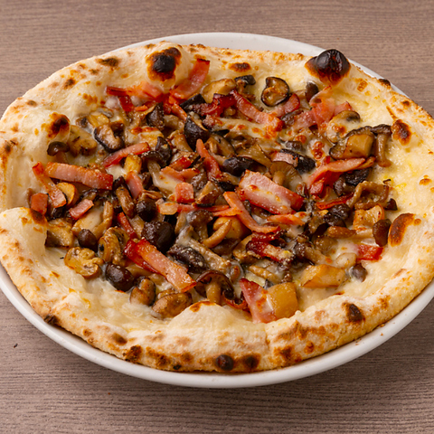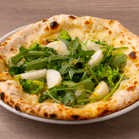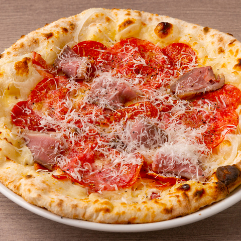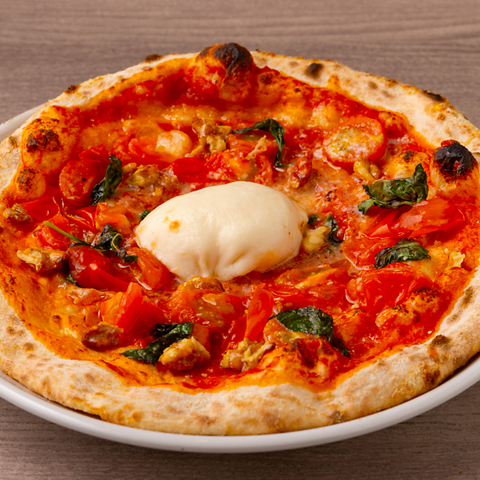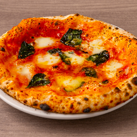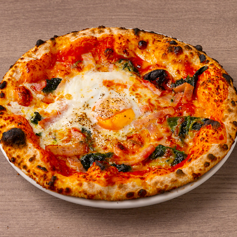 イタリア産の小麦粉を使用し、低温発酵させた生地を580度の高温窯で一気に焼き上げることで、外はカリッと、中はもちもちの食感を実現しています。「マルゲリータ」や「ビスマルク」など、多彩なピッツァをお楽しみいただけます。