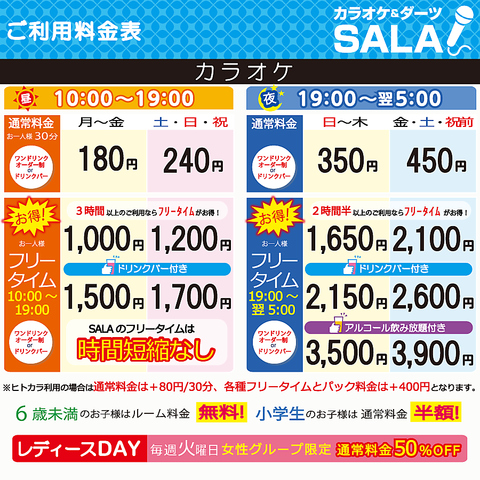 | 料金備考 | 1人30分/10:00~19:00 160円~ 19:00~翌5:00 420円~税込 |
