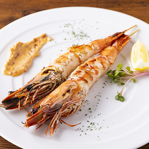 看板料理の鉄板串焼きは盛り合わせでのご用意もございます!数量限定の黒毛和牛の一口ステーキ串や有頭大海老串などもおすすめです!定番人気メニューの自家製焼きポテトサラダ、サーモンとアボカドのタルタル、ローストビーフ、色彩風 とんぺい焼きなど勢ぞろい!