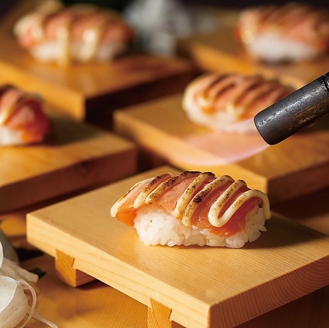 【4月タイムサービス】・サーモンマヨ炙り寿司…18:30ごろ・苺の一口クレープ包み…19:30ごろ※数量限定です、ご了承ください。