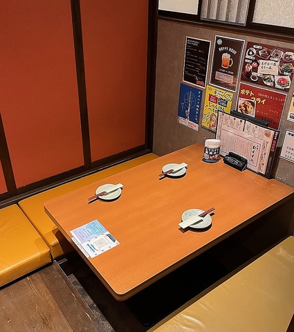 【2名から4名様用テーブル席】仕事帰りにふらっと一杯、仲間との気軽な飲み会にご利用下さい。少人数でゆったりお過ごしいただける空間。名物博多もつ鍋や馬刺しなど本格九州料理と、厳選芋焼酎を囲めば会話も弾みます。日常使いにも、ちょっとした記念日にも。皆様のご来店を心よりお待ちしております。