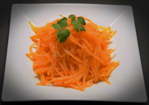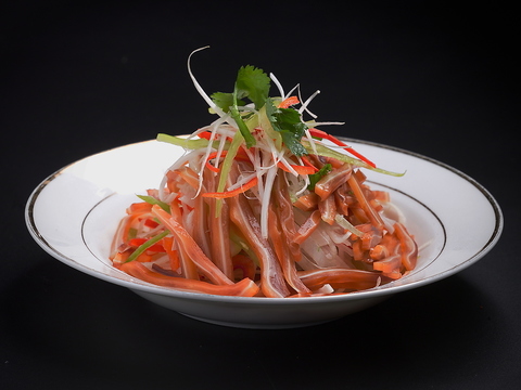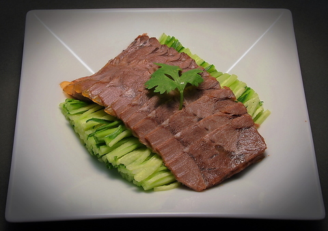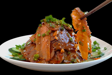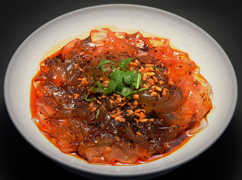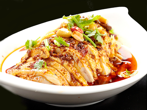 やわらかく蒸した鶏肉に自家製辛ソースをかけた冷菜。辛さ調整などお気軽にお申し付けください。辛さが後を引くおいしさ!ビールがすすむ当店人気のメニューです。