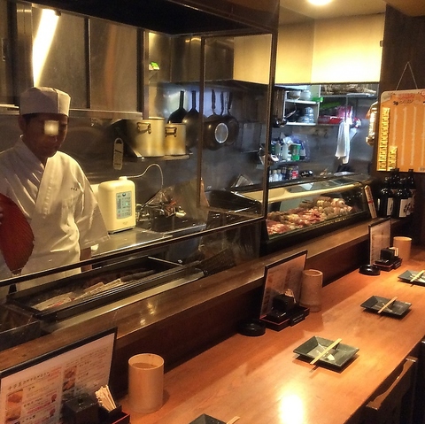 新鮮で自信があるからこその焼き場の見えるカウンター!目の前で串が焼かれてる様は五感で楽しめること間違いなし。