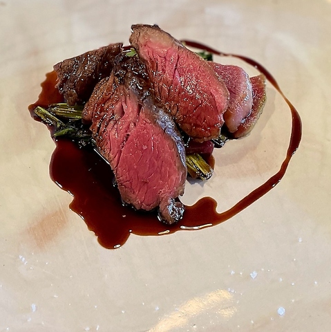高知県へ訪問し出会った食材で間違いなくオススメ! 土佐あかうしの美味しさは、赤身とサシのバランスの良さにあります。旨みを蓄えた赤身には、甘みを感じるアミノ酸の総量が黒毛和種の2倍以上あります。脂は入りすぎずヘルシーで、そのサシの細かさや融点の低さから、独特の風味を生み出す赤身モモ肉の旨さを活かしたローストが一推しです。