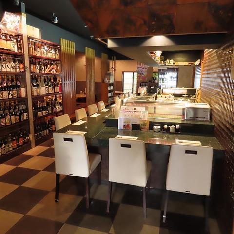 洗練されたカウンター席と、整然と並ぶ酒瓶が印象的な穏やかな空間♪ 木の質感や柔らかな光がほどよく調和し、上品で落ち着いた雰囲気をつくり出しています。カウンター越しに広がるすっきりとした眺めは居心地が良く、料理をじっくり味わいたい時にもゆっくり過ごせるのが魅力の店内です。