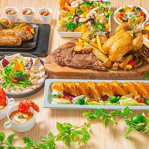 ゴールデンウィーク限定のスペシャルメニューが勢ぞろい。リブロースステーキやローストチキン、濃厚ビスクスープ、パスタなど世代を問わず楽しめるお料理がテーブルを彩ります。※5月2日~6日はランチ90分の2部制となります。