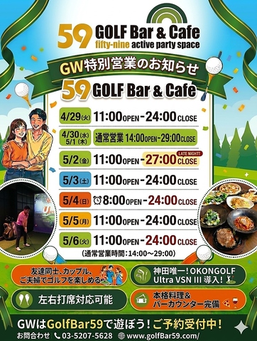 | 店名 | 【完全個室&喫煙可】ダイニング&ゴルフバー59 |