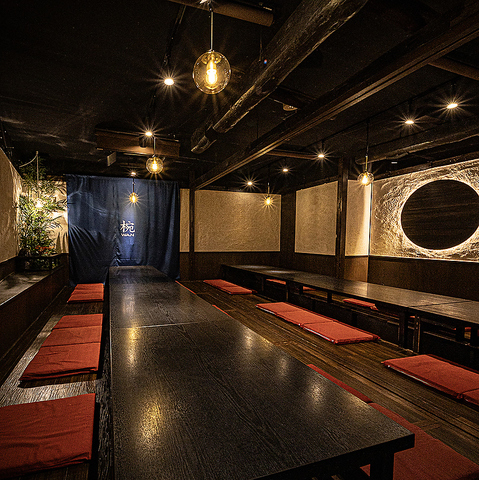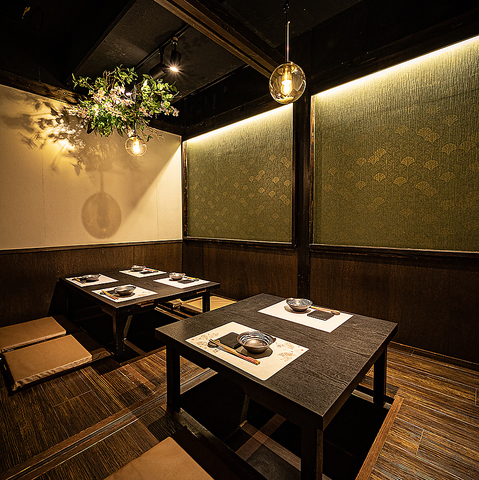 掘りごたつタイプのお席は足をおろしてゆったりおくつろぎ頂けます♪様々な個室をご用意しておりますので、人数に合わせたお席にご案内いたします!会社飲み会や2次会、お友達同士、ご家族でのご利用にもおすすめ◎古民家風の造りはまどろみの時間を演出。自慢の創作料理で最高の時間をお過ごしください♪