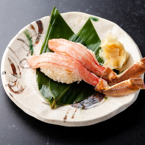 鮮度抜群な蟹の身を、職人が一貫一貫心を込めて握ります。口の中でほろりとほどけるシャリと、蟹本来の上品な甘みが織りなす繊細な調和をお楽しみください。