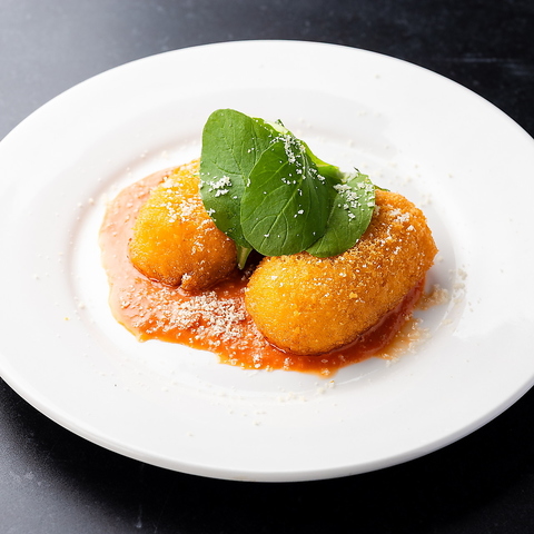 蟹の旨みが溶け込んだ滑らかなベシャメルソースが自慢の自家製クリームコロッケ。サクサクの衣の中から、とろりと熱々のクリームが溢れ出します。