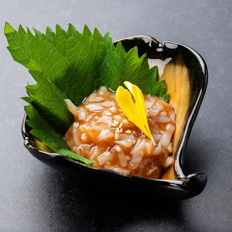 なんと原価ギリギリ赤字覚悟!繊細な蟹身と蟹味噌を甲羅に贅沢に詰め込んだ香箱蟹の刺し身。素材そのままの旨味をシンプルに楽しめる逸品で、日本酒との相性も抜群。通も唸る上質な味わいをご堪能ください。