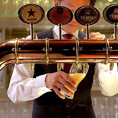 当日コースも対応可!ヱビスはもちろん4種類の生ビール放題付コースは4,500円~ 一杯一杯丁寧にご提供!