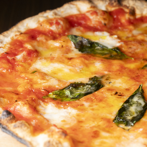 トマト、モッツアレラ、バジルの王道ピッツァにたっぷりの魚介を入れた当店名物ピッツァ。 北海道産幻の小麦”はるゆたか”と全粒粉を使用した北海道×イタリアの自家製のピザ生地。