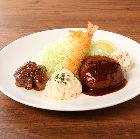 ハンバーグ&海老フライ&コロコロステーキプレート