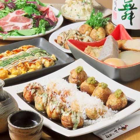 2時間飲み放題付きのコースを多数ご用意!職人が焼くたこやき食べ比べから、信州プレミアム牛リブロース・サーロインステーキなど贅沢な食材を使用した鉄板料理など様々なお料理をお楽しみ頂けます!女子会からお祝い事、各種ご宴会にもおすすめです◎是非ご利用ください♪