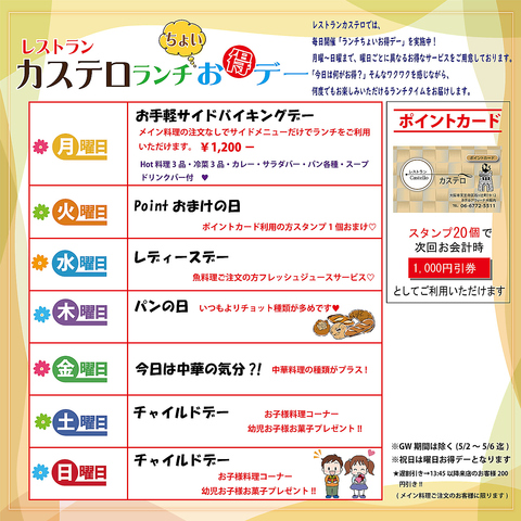 | お子様連れ | お子様連れ歓迎 :お子様も安心してご来店ください! |