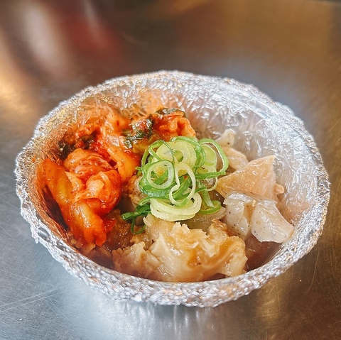 ちんちくりんMIXホルモンのタレ焼き/国産A5等級牛コウネキムチ