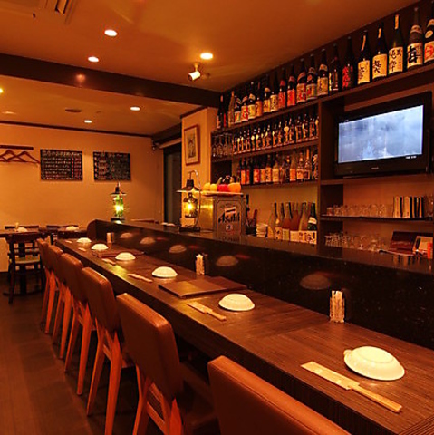 店内には木の温もりも感じられる内装と、温かみのある照明が優しく包み込みます。仕事帰りの一杯や親しい友人とのサシ飲みにも最適なカウンター席を完備。落ち着いた情緒漂う雰囲気の中で、スタッフとの会話や調理の音を楽しみながら、リラックスした夜のひとときをゆったりとお過ごしください。