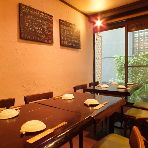 友人や同僚との飲み会、グループでの宴会にはテーブル席がおすすめ。木目を基調とした店内は温かな光に包まれ、ゆったりと腰を据えて料理や会話をお楽しみいただけます。アットホームで落ち着いた雰囲気の中、美味しい地鶏料理を囲みながら、大切な仲間との絆を深める素敵なひとときを演出します。