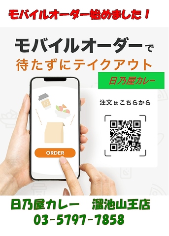 美味しい日乃屋カレーを、ご自宅やオフィスで食べれます!待ち時間も少なくスムーズにご提供いたします!電話での受付も承っておりますので、お気軽にご連絡ください。
