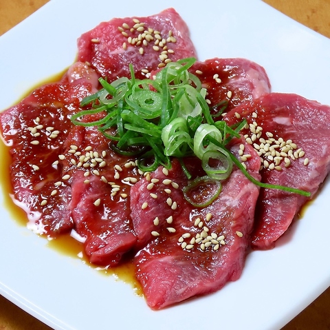 肩ロース肉から取れる部位で、ロース肉としてはサシが少な目ではあるが、柔らかさが際立つ部分。「マルシン」と共にユッケなどには最適とされることから、やはりレアで食べるのがオススメ。