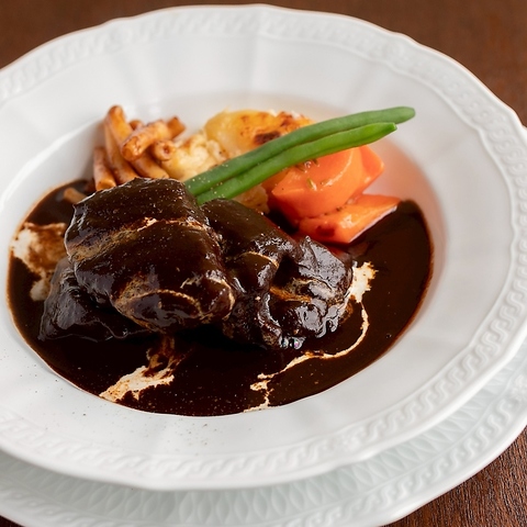 たっぷりの赤ワインと自家製デミグラスで煮込んだ当店自慢のタンシチュー