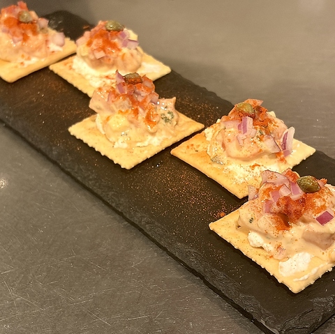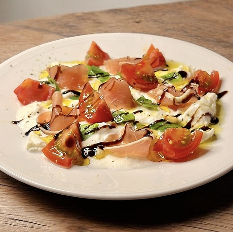 イベリコ豚の原木生ハムを注文受けてから丁寧に切り落とすので、フレッシュで瑞々しく肉と油身の旨さが口に広がります。スパークリングやワインなどと笑顔の時をどうぞ!!!(ハーフもあります)