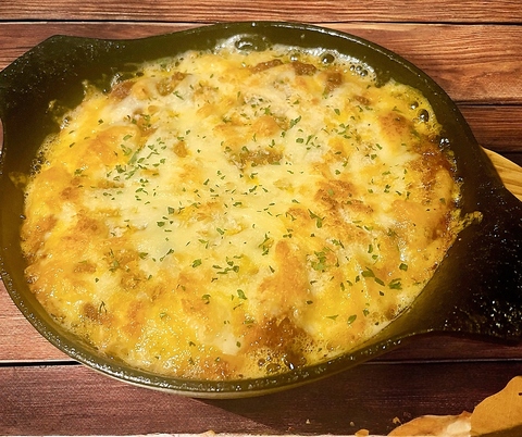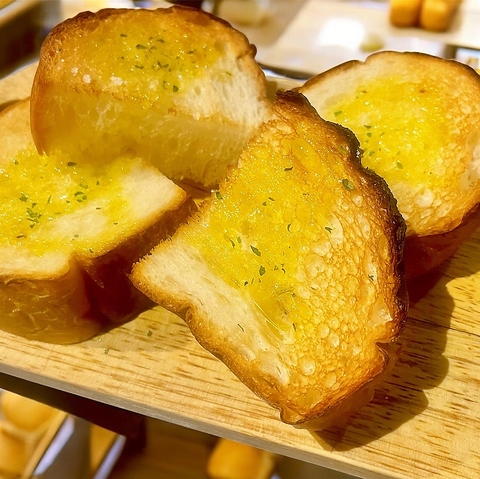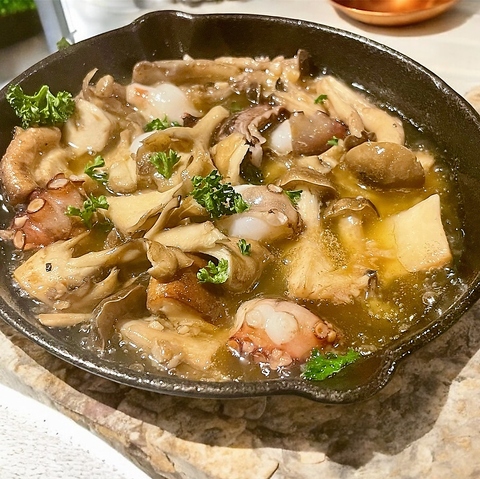 ぐつぐつとオリーブオイルとニンニクで煮込んだバルの定番大人気メニューは頼まずにはいられない!バゲットをオイルに漬けて食べるのも超オススメ!他にもメニューは変わるよ♪