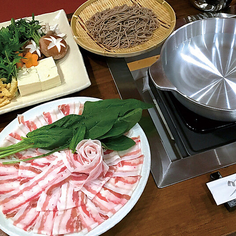 鹿児島産黒豚を使用し、オリジナルの蕎麦つゆでいただく黒豚しゃぶしゃぶです。味の決め手はなんと言ってもオリジナルのそばつゆです。〆は日本そばをお召し上がりいただきます。