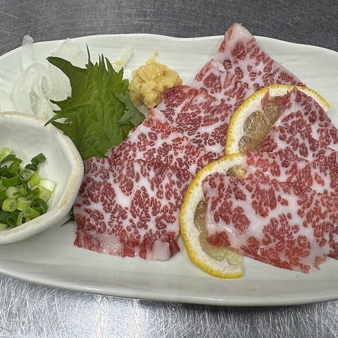美しいサシが入った極上の馬肉は、口に運べばとろけるような柔らかさと、上品で濃厚な甘みが広がります。九州特有の甘口醤油に薬味をたっぷり絡めれば、お酒のお供としてこれ以上のものはありません。メインの炊き肉がグツグツと仕上がるのを待つ間の、至福のひとときにぜひご堪能ください。