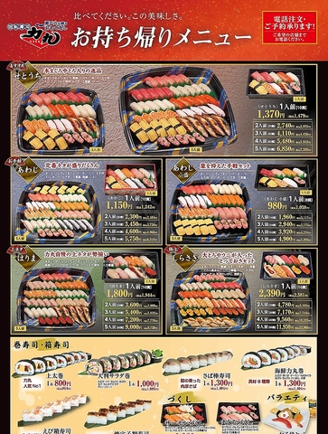平日11~15時限定!!【1】春の旬盛りランチ1518円(込)【2】定番にぎりランチ1078円(込)【3】おすすめ鮮魚ランチ1496円(込)【4】ごちそうにぎりランチ1650円(込)【5】一日五食!まる得限定ランチ1430円(込)【6】上ネタ満腹握りランチ1540円(込)【7】特選ランチ1980円(込)