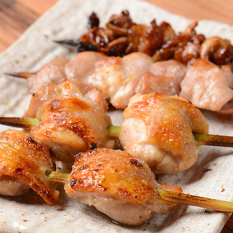 串焼きをこよなく愛す店長が鮮度抜群の鶏を、こだわりのタレで熱々に焼き上げる焼鳥! 外はパリッっと中はふっくらと焼き上げ独特の薫香が食欲をそそります。鶏専門店の焼き上げる串焼きは絶品そのもの!美味しい食べ方は串から外さず熱々のうちに食べるべし!焼き鳥以外にも人気の鶏料理をご用意しております!
