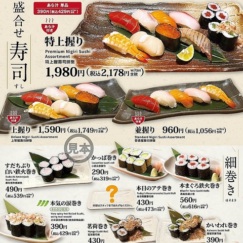 単品の寿司メニューはもちろんのこと、お得な盛り合わせもあります!