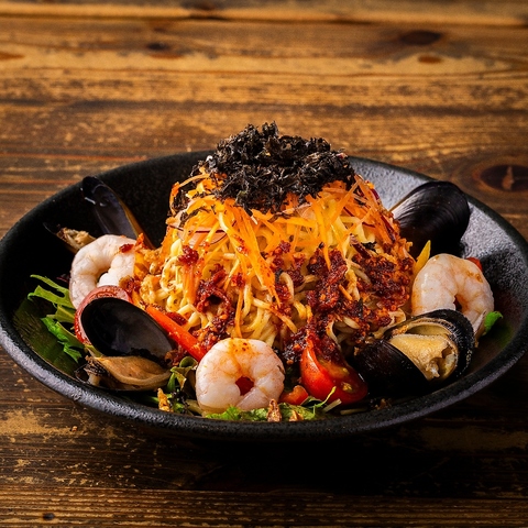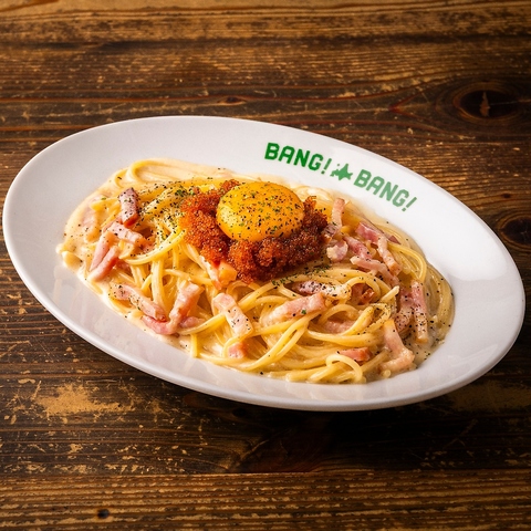 ぷちぷち食感のとびっこを散らし、和風出汁を効かせた新感覚カルボナーラ。濃厚ながらも後味は軽やかな一品。