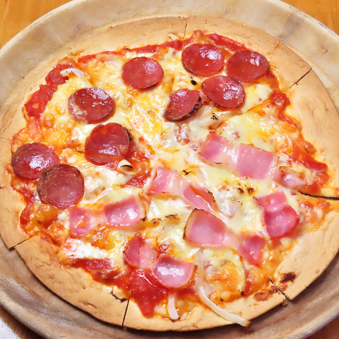 昼は彩り豊かなランチ、夜は落ち着いた雰囲気のダイニングバーとして楽しめるお店です。ピザは自家製生地でモチモチ食感、トマトソースやチーズの風味がしっかり楽しめ、シェアして食べるのにぴったり。夜はバル風の照明でおしゃれに大人時間を演出。アヒージョやチーズフォンデュ、ピザなど、お酒と一緒に楽しめるメニューが充実。