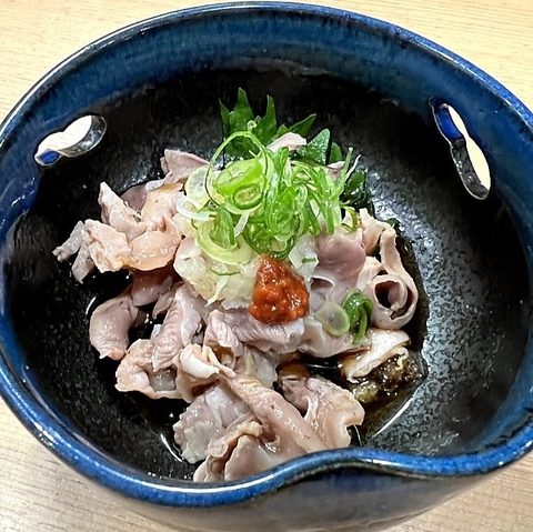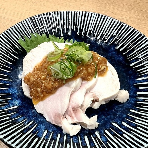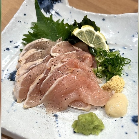 厳選した鶏をタタキにしております。つける醤油も鹿児島産の甘醤油を使用しております。