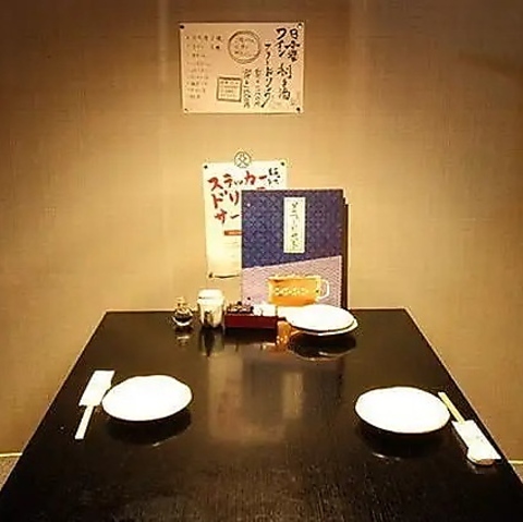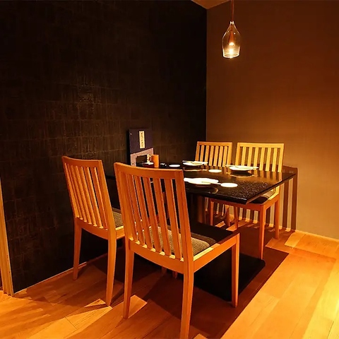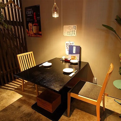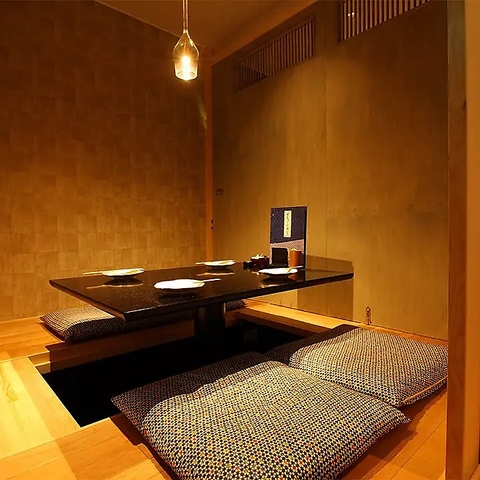 こちらは少人数での宴会にもおすすめの2階にある掘りごたつ個室です。お隣のテーブルとの間に仕切りを入れて、4名様までのプライベート個室としてのご用意も可能です。洗練された空間は、接待や記念日デートなど大切な席にもお使いいただけます。今宵はいつもよりも贅沢な語らいの時間を心ゆくまでお楽しみください。