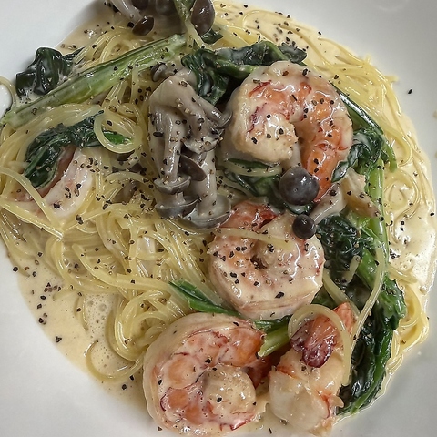 【ありが亭】自慢の一品♪【海老と野菜のクリームパスタ】