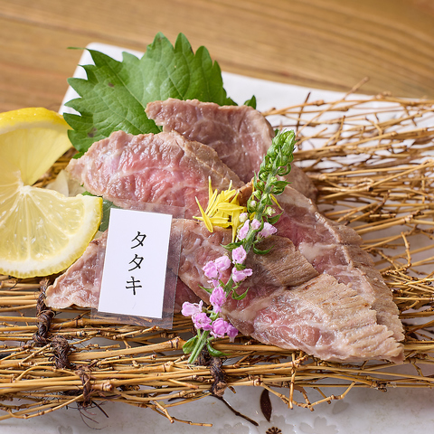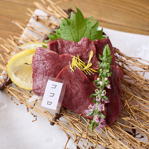 料理長が目利きした産直馬刺し。部位にもこだわり、レバーや心臓といった希少部位もご用意しております。その新鮮さをダイレクトに味わっていただける馬刺しはもちろんのこと、素材を熟知した職人が丁寧に仕上げる逸品料理をご堪能ください。