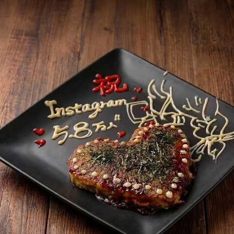 記念日やサプライズに! 世界に一つ、【メッセージを添えたハート型お好み焼き】で特別な思いで作りを!歓送迎会に向けて、昇進祝いに向けて、ご家族様やご友人様、恋人に向けてのあらゆるシーンにご対応させて頂きます!詳しくはお店にご確認ください。