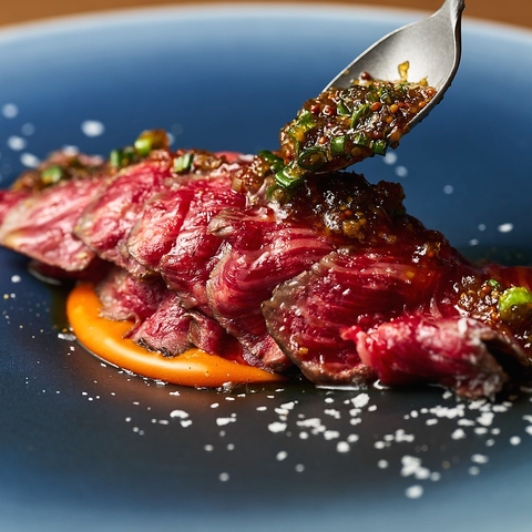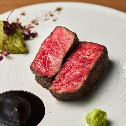 溢れる肉汁と肉の味わいをしっかり感じる事の出来る旨味とのバランスが最高な名物おおいた和牛の赤降りスペシャル オレイン55%。食材探しは必ず生産地へと赴き、生産者のこだわりと想いがゲスト皆様に伝わるよう調理法にもこだわっています。皆様の期待にお応えできる自慢のおおいた和牛をご堪能あれ。