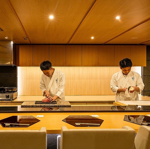 目の前で職人の調理が見えるカウンタ―席は、1名様~10名様までのご利用が可能です。シンプルな木製カウンタ―に石畳を思わせる壁と床が、落ち着いた食事空間を演出します。大切な人とお酒を酌み交わしながら語り合い、時に職人の話に耳を傾けながら料理に舌鼓を打つ、そんな特別感を感じられるお席です。