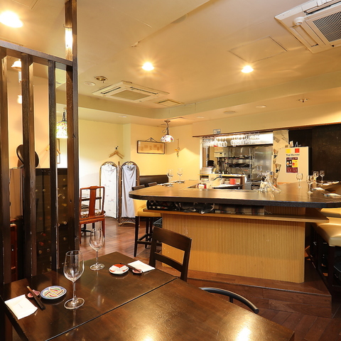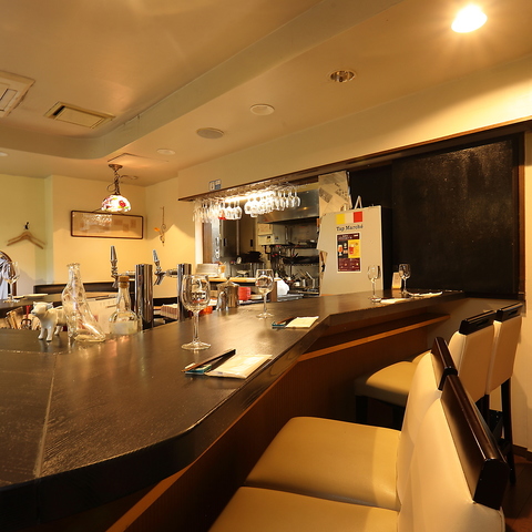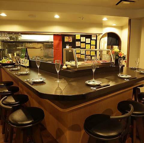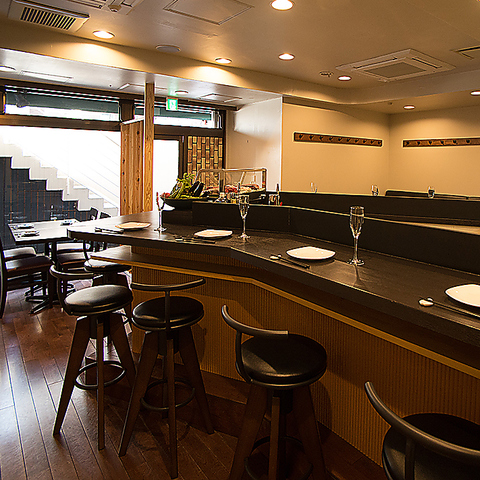 落ち着きあるカウンター席は、シェフの調理を間近で楽しめる特等席☆料理の香りと音に包まれる臨場感を◎