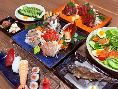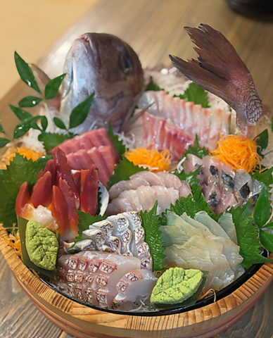 市場より毎朝仕入れる鮮魚を使用した海鮮料理が自慢!中でも鮮魚のお刺身は、脂がのった素材本来の旨みをダイレクトに味わえる逸品!プリプリで口の中いっぱいに広がる旨味をご堪能下さい♪全国各地から選りすぐりの日本酒にワイン等多数取り揃えておりますので、ぜひご一緒にお楽しみ下さい♪