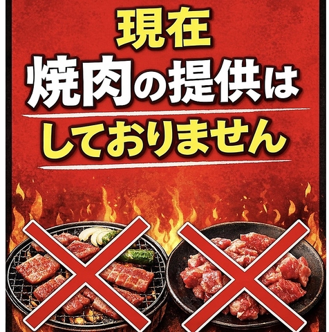 2026年4月1月より焼肉メニューリニューアルに伴い、焼肉の提供を一時終了させて頂きます。