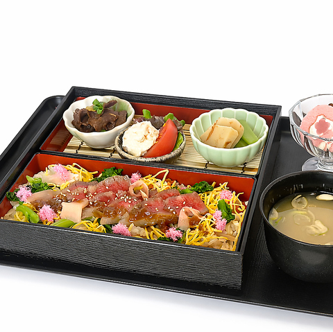 春の食材と当店自慢の和牛ステーキをのせたおススメランチ♪お祝いやお集まりの際に是非いかがでしょうか?
