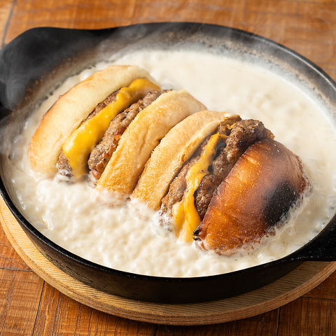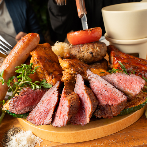 なんと総重量は肉だけで1kg越え!牛・豚・鶏のメインディッシュがぜんぶ楽しめる名物肉盛り。チーズフォンデュもついて最後まで熱々の状態で美味しくお召し上がりいただけます!ぜひ3~4名様でシェアして楽しんで!