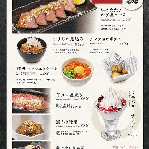・牛サイコロステーキ 690円・牛すじの煮込み 490円・あん肝ポン酢 390円・かに玉小丼 690円・韓国風煮卵 390円・ガーリックシュリンプ 490円・牡蠣のガーリックバター焼き 590円・ミニコーヒーゼリーパフェ 390円【朗報】今すぐ入会で食べられます!断然お得!簡単!無料!ポイントもすぐ貯まる!!