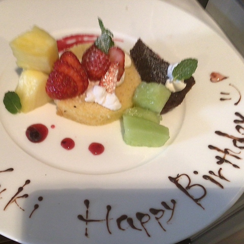 当店では、皆様の大切な記念日のおもてなしに特別なコースをご用意しております。メッセージプレートのご用意も承っておりますので、是非この機会にご予約下さいませ。選べる乾杯ドリンク+デザート+食後の珈琲付きアニバーサリーコース★6600円 ※写真はイメージです