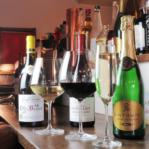 - ◆ワインは全てグラスワインでご提供可能です。ご希望のワインをお選び頂きお楽しみ下さい。※スパークリングについては『本日のスパークリングワイン』として¥880でグラス対応しております。